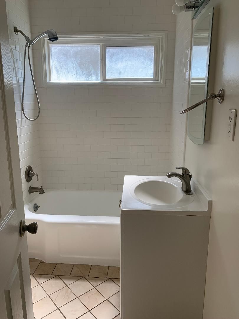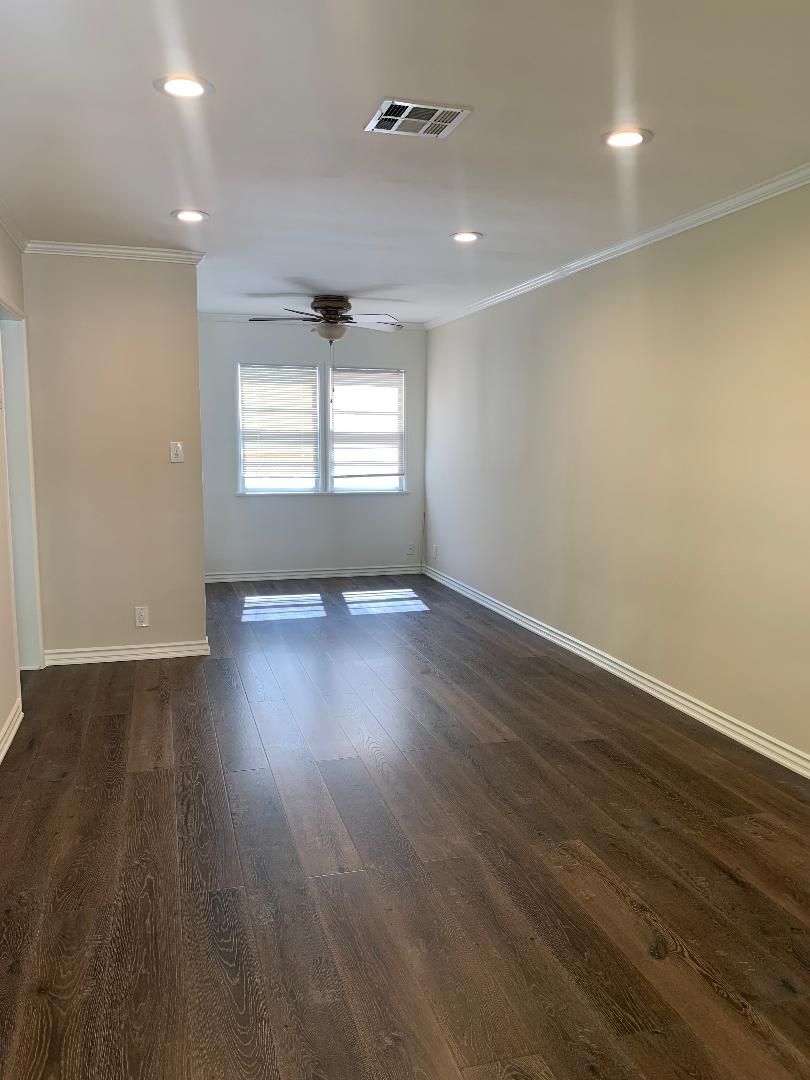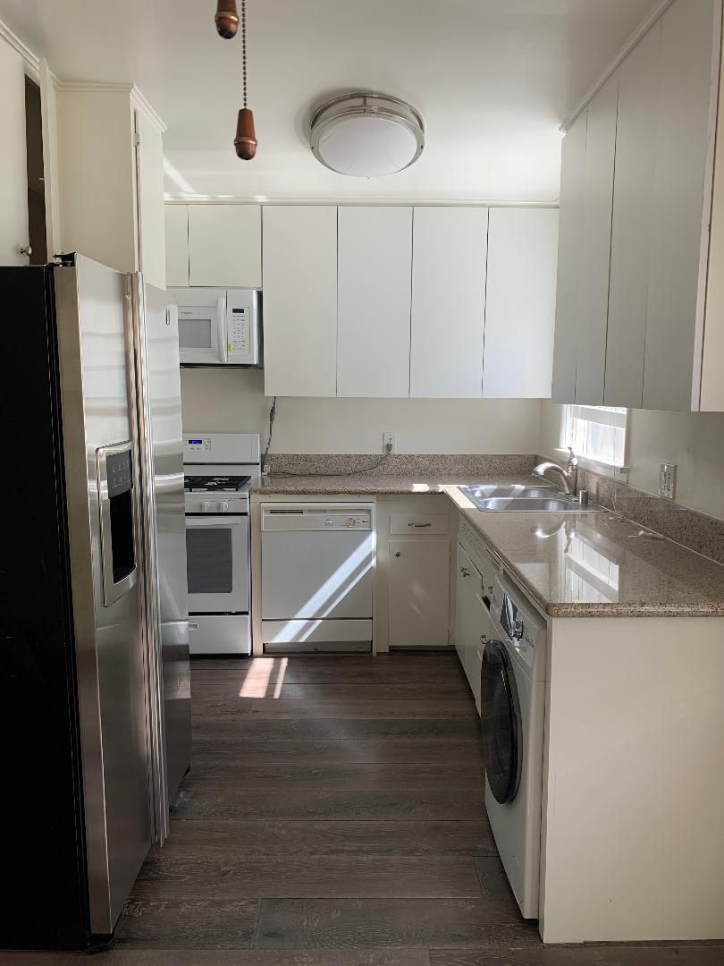 upstairs one-bedroom apartment with beautiful flooring throughout including a washer and dryer, dishwasher, microwave, stove, central A/C, recessed lighting, and one parking space.