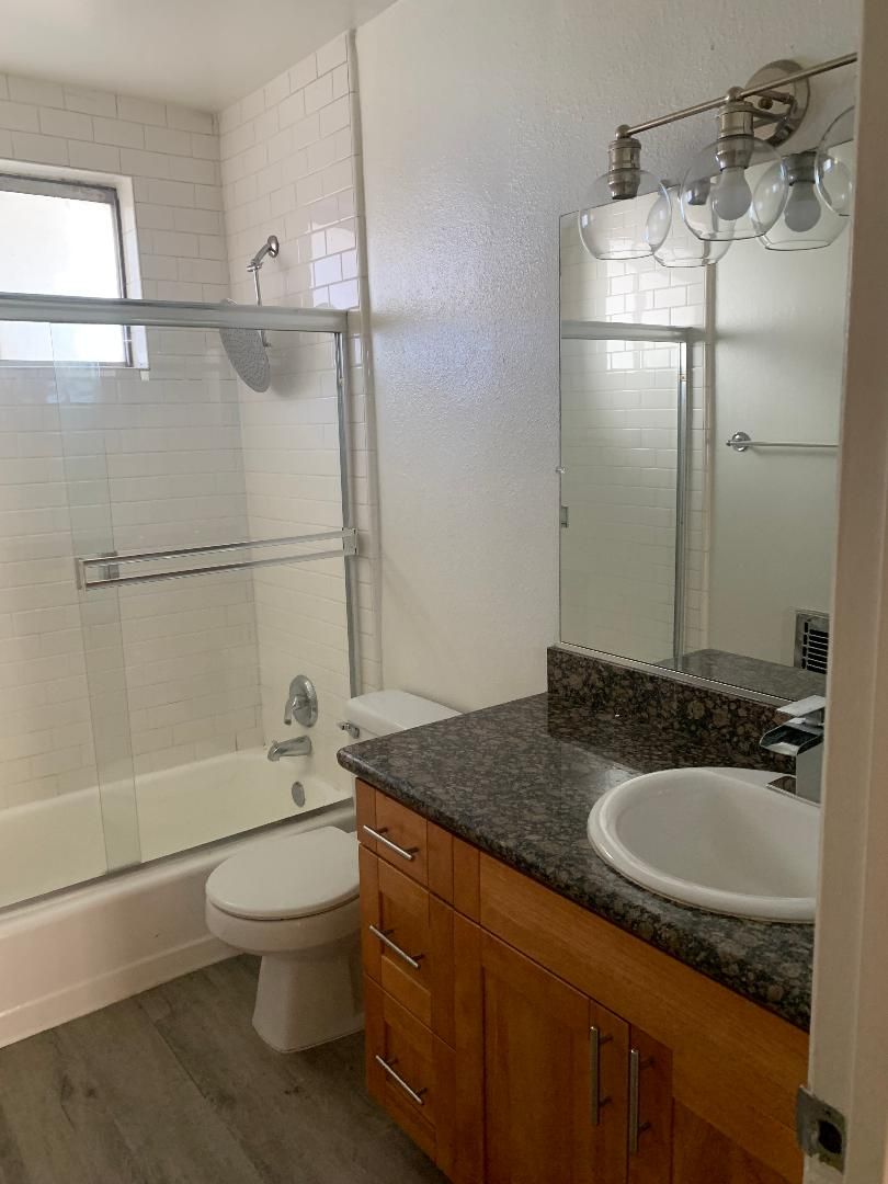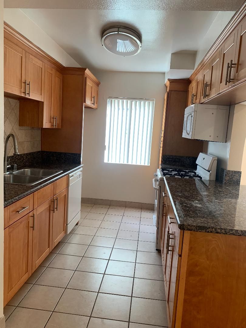 One bedroom Apt with hardwood floors, carpet in the bedroom, recessed lighting, new wooded cabinetry in the kitchen washer and dryer in unit, gated parking with controlled access, pool on the premises, A/C and heating throughout.